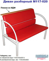 Диван разборный с подлокотниками и с планкой из МДФ от производителя ООО «Техсервис»,...