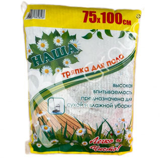 Тряпка для пола изготовлена из экологически чистого, нетканого холстопрошивного полотна (ХПП) - материала повышенной прочности и износостойкости. Особый состав волокна, пористая, рыхлая структура позволяет половой тряпке иметь отличные впитывающие способности, каких нет у обычных тряпок. Изделие не размазывает грязь по поверхности, а впитывает её. Ещё одно важное свойство тряпки это то, что она не оставляет мокрых разводов и ворса, отлично впитывает влагу, хорошо отжимается, "классика" домашней уборки.