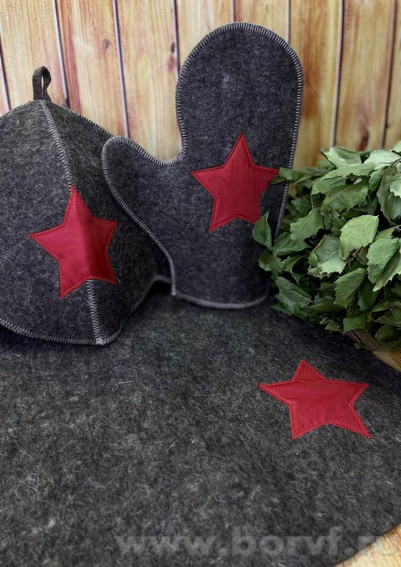 Классический набор для сауны – это коврик, шапочка и рукавица из войлока.