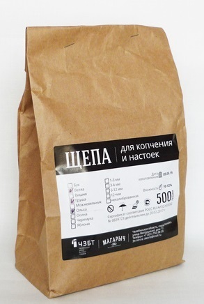 ЧЗБТ предлагает щепу для копчения и настоек из дуба, ольхи, осины, которую можно использовать в коптильнях Магарыч. Экологически чистая щепа выпускается в бумажных пакетах фасовкой по 500 г.