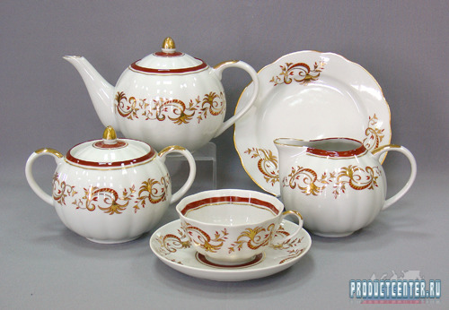 Сервиз чайный "Золотое кружево". Сервиз чайный на 6 персон из 21 предмета, фасон "Тюльпан"