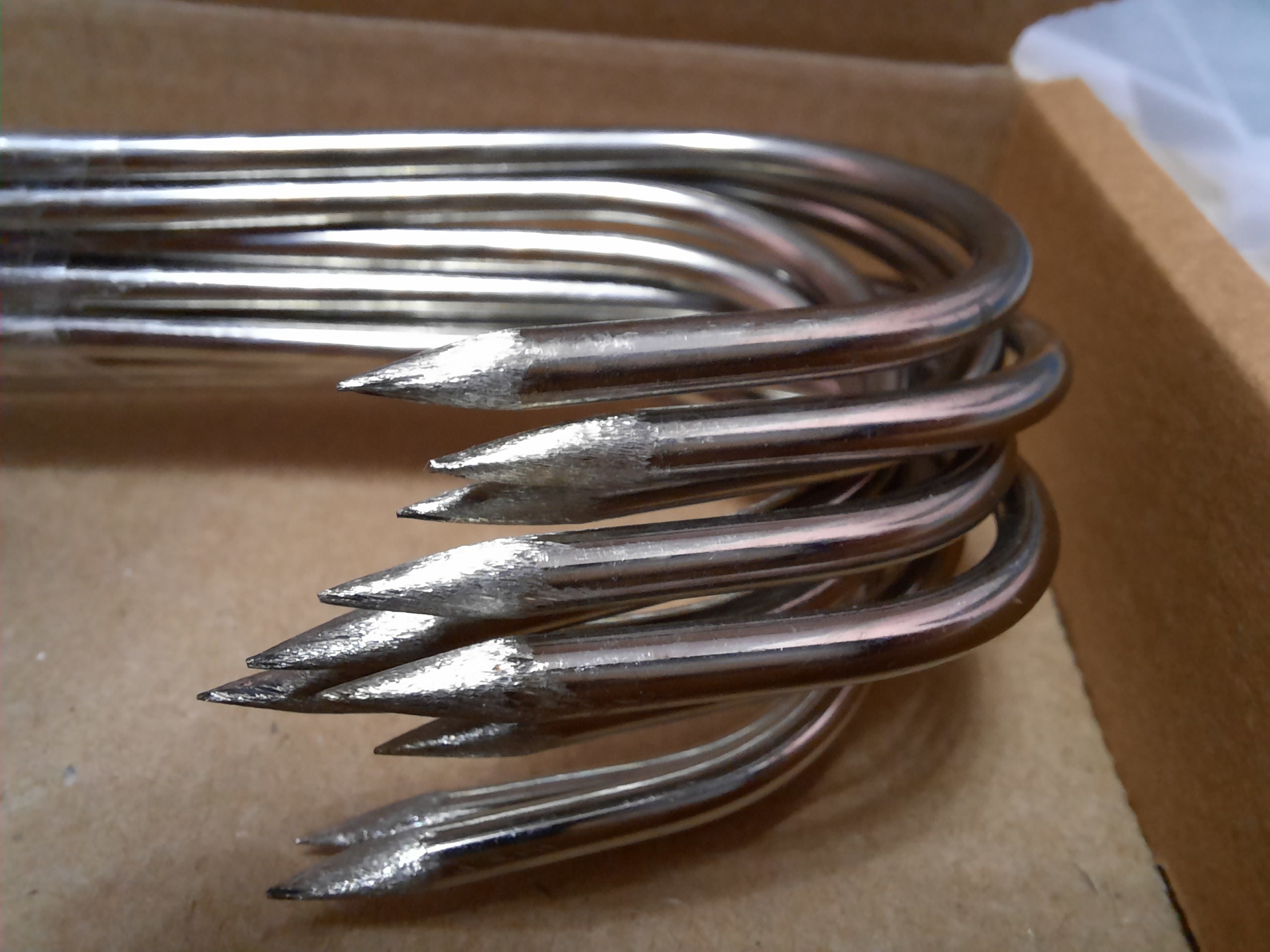 Крючки цельногнутые изготовлены из нержавеющей стали, что обеспечивает долговечность и устойчивость к коррозии. Имеют заточку с одного конца. Крючки подходят для горячего и холодного копчения, что позволяет использовать их для приготовления разнообразных блюд.