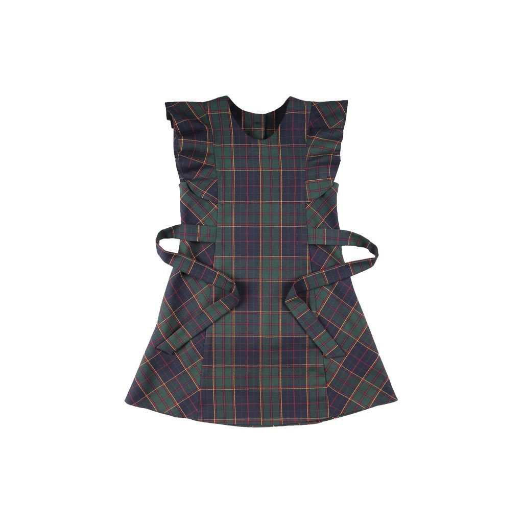 Сарафаны на девочку, в шотландскую клетку, приталенные. По окату рукава оборка «крылышки». Спинка на пуговицах. Пояс из двух частей, закрепленных в боковых швах, завязывается сзади.