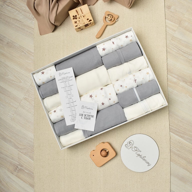 Комплект для малышей 30 предметов Ночка: пеленка 90*100-3 шт, комбинизон 4шт, пеленка-кокон 2шт, боди-2шт, распашонка-2шт, ползунки-2шт, чепчик-2шт, штанишки-2шт, нагрудник-2шт, шапочка с узелком-3шт, пинетки-2пары, рукавички-2пары, платочек-2шт.