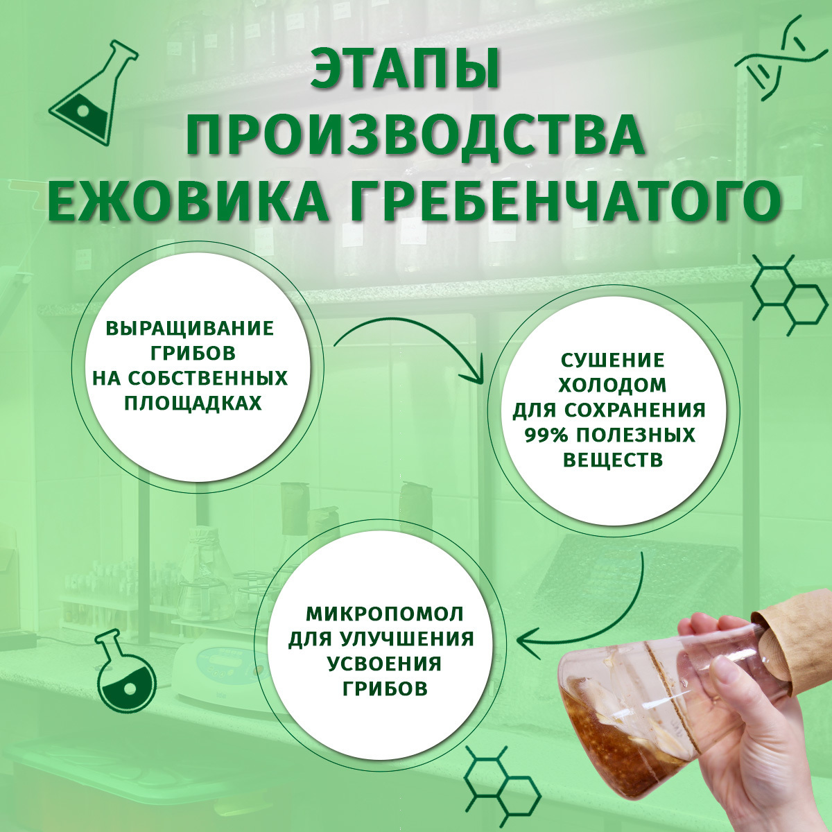 Состав: Эринацин А (обеспечивает рост новых нервных клеток (из стволовых), развивает и укрепляет существующие нейронные связи, поддерживает жизнеспособности нейронов, снижает риск некоторых когнитивных нарушений, помогает восстановить нейроны после инсульта).