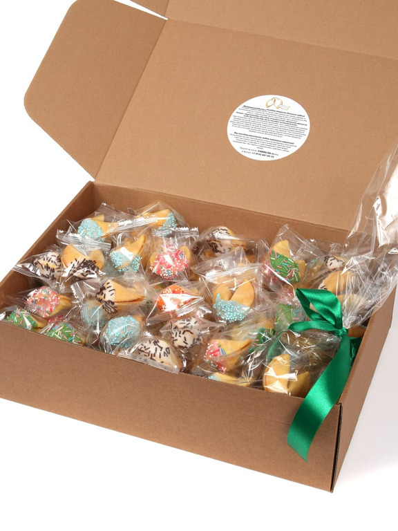 Печенье с глазировкой и предсказаниями в индивидуальной упаковке в широком ассортименте от компании «Корпорация Удачи», г. Москва.