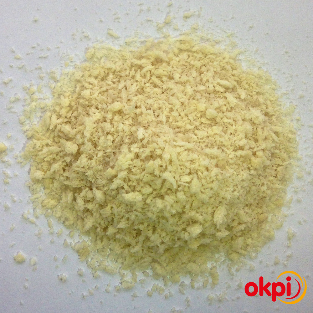 Панировочные сухари из белого хлеба - крошка из свежеиспечённого пшеничного хлеба, фракционное разделение. Сфера применения - изготовление полуфабрикатов и готовых мясных, рыбных, овощных блюд. Используется как посыпка. Отличается плотной структурой.