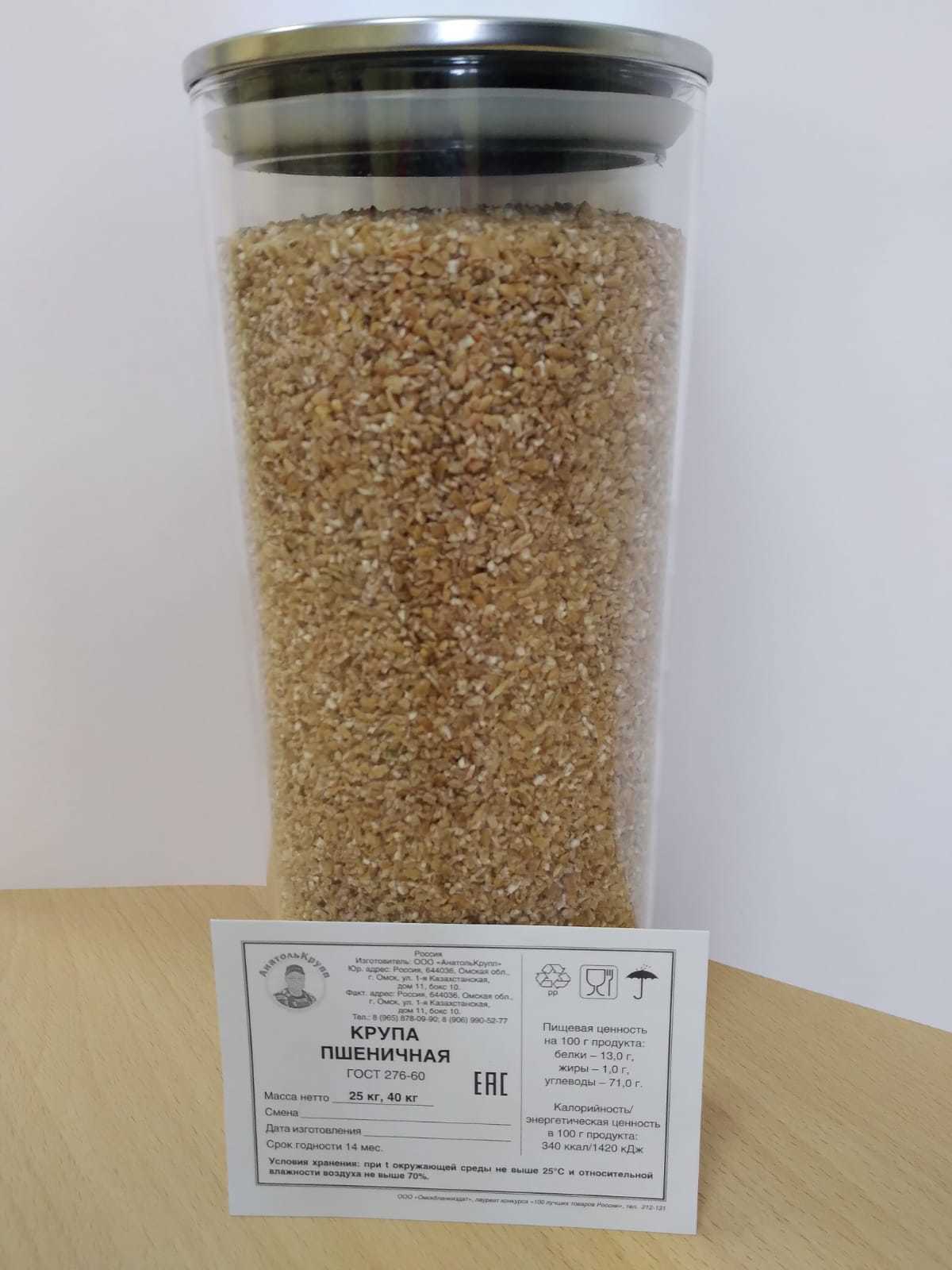 Крупа пшеничная из мягких сортов пшеницы ТУ 61.31.001-39899034-2021, масса нетто мешков 25 кг, 40 кг, цена указана с НДС .
