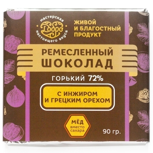 Горький шоколад с орехами - высокая полезность и праздник вкуса в одном шедевре! Содержание - какао, мед, орехи. Производитель шоколада «Добро» выпускает 5 видов изделий. Начинка - фисташки, грецкий орехи, кедровый и пр.
