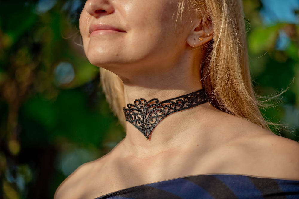 Чокеры из натуральной кожи резные для взрослых женщин, девушек и детей. Большое количество моделей, цветов и размеров. Уникальные авторские дизайны. Возможность создания комплетов украшений с одинаковым дизайном. Изготовление под заказ: индивидуальный размер, цвет, дизайн по вашему эскизу. Высокое качество исполнения.