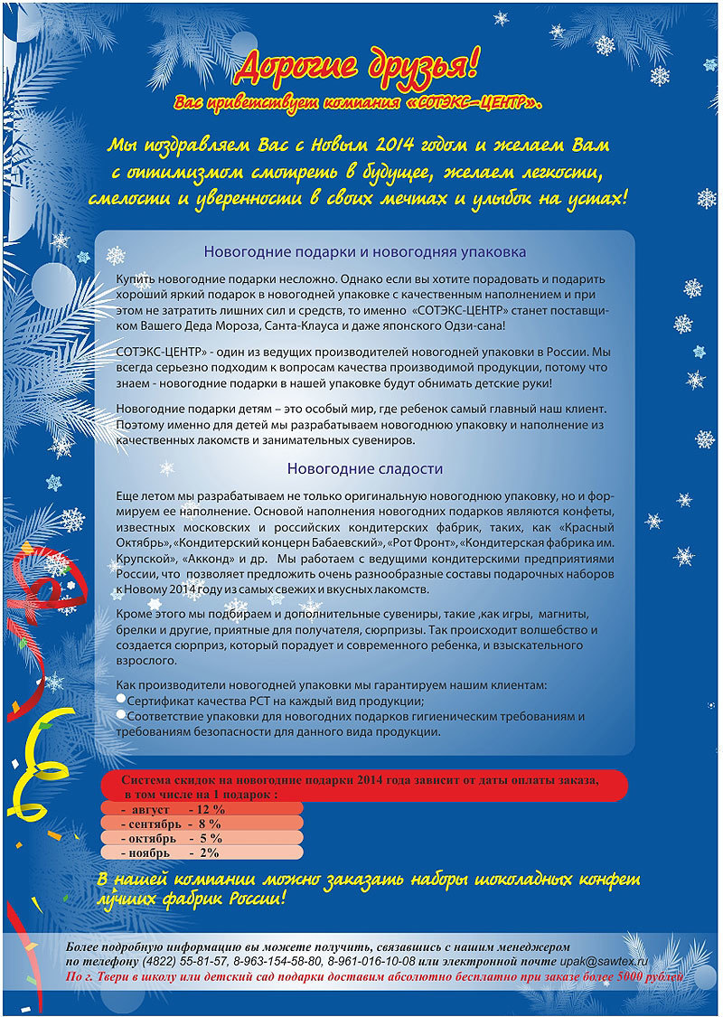 Наша компания предлагает подарочные новогодние подарки в праздничной упаковке.
