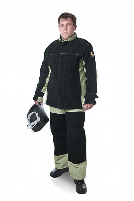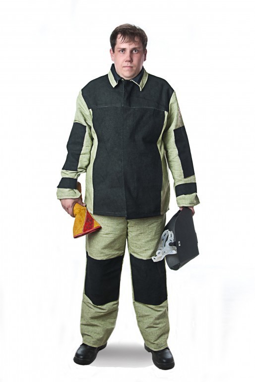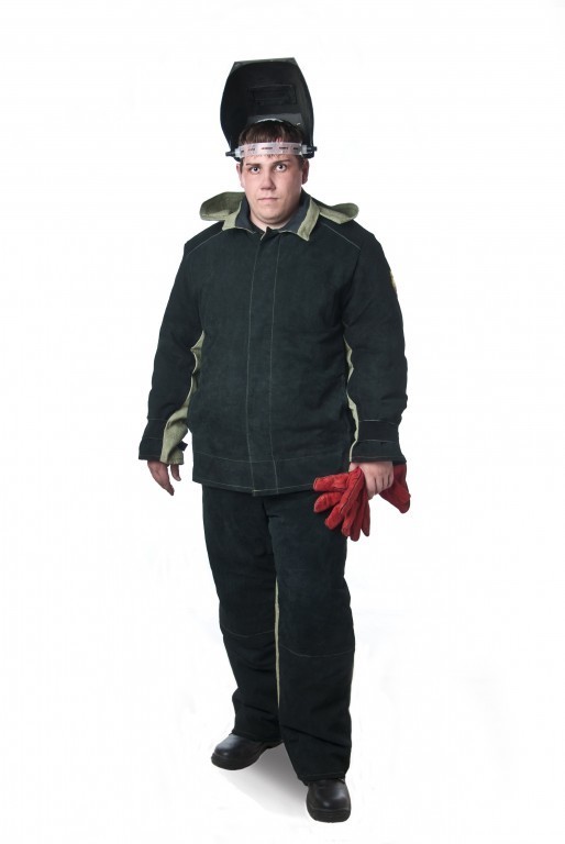 Одежда оберегает сварщика от капель и искр жидкого металла при работе. Костюм оснащен карманами, куртка застегивается на пуговицы, подклад хлопчатобумажный.