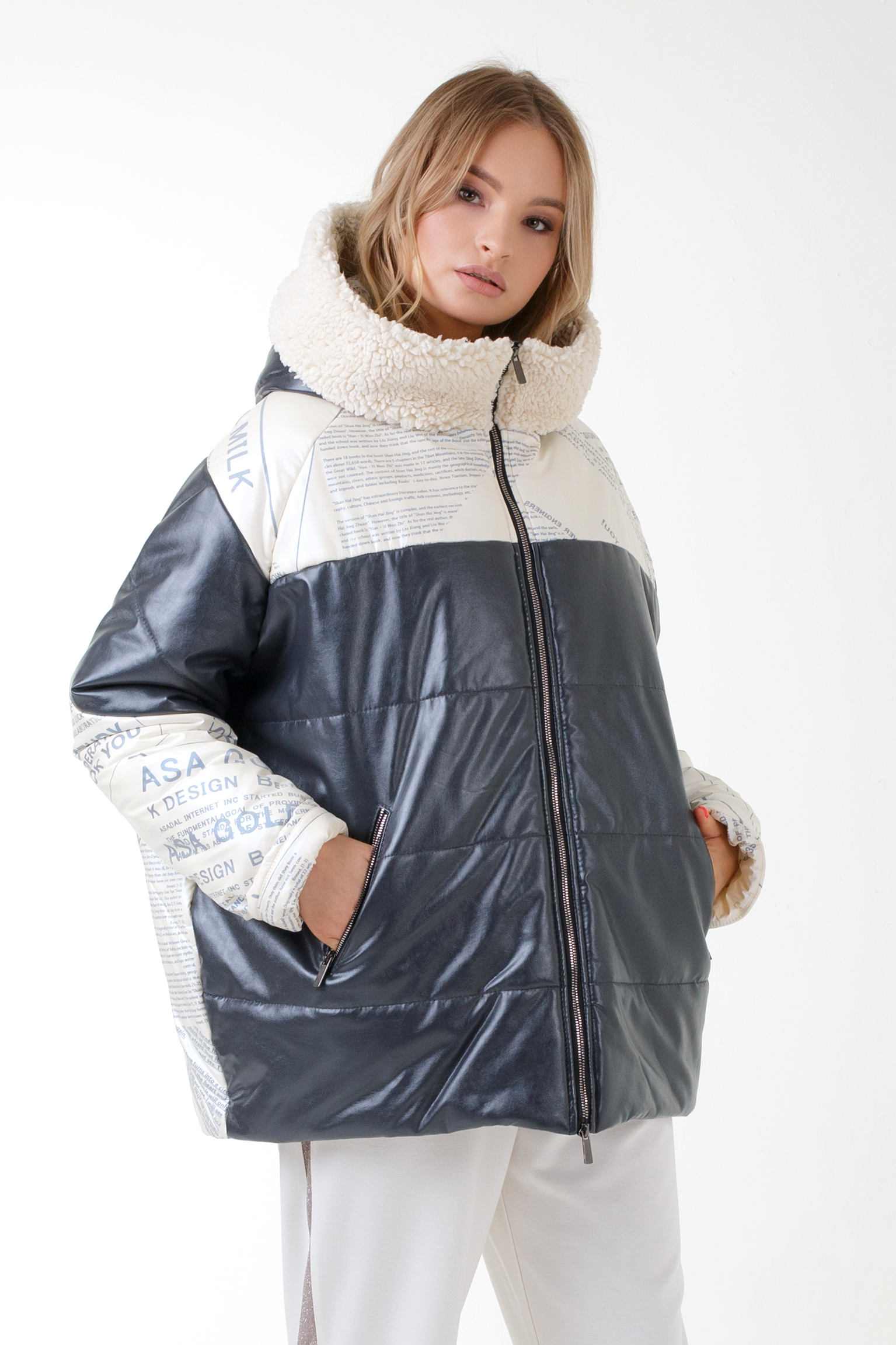 Куртка скомбинирована из двух видов ткани: принтованая курточная ткань и искуственная кожа(нового поколения)