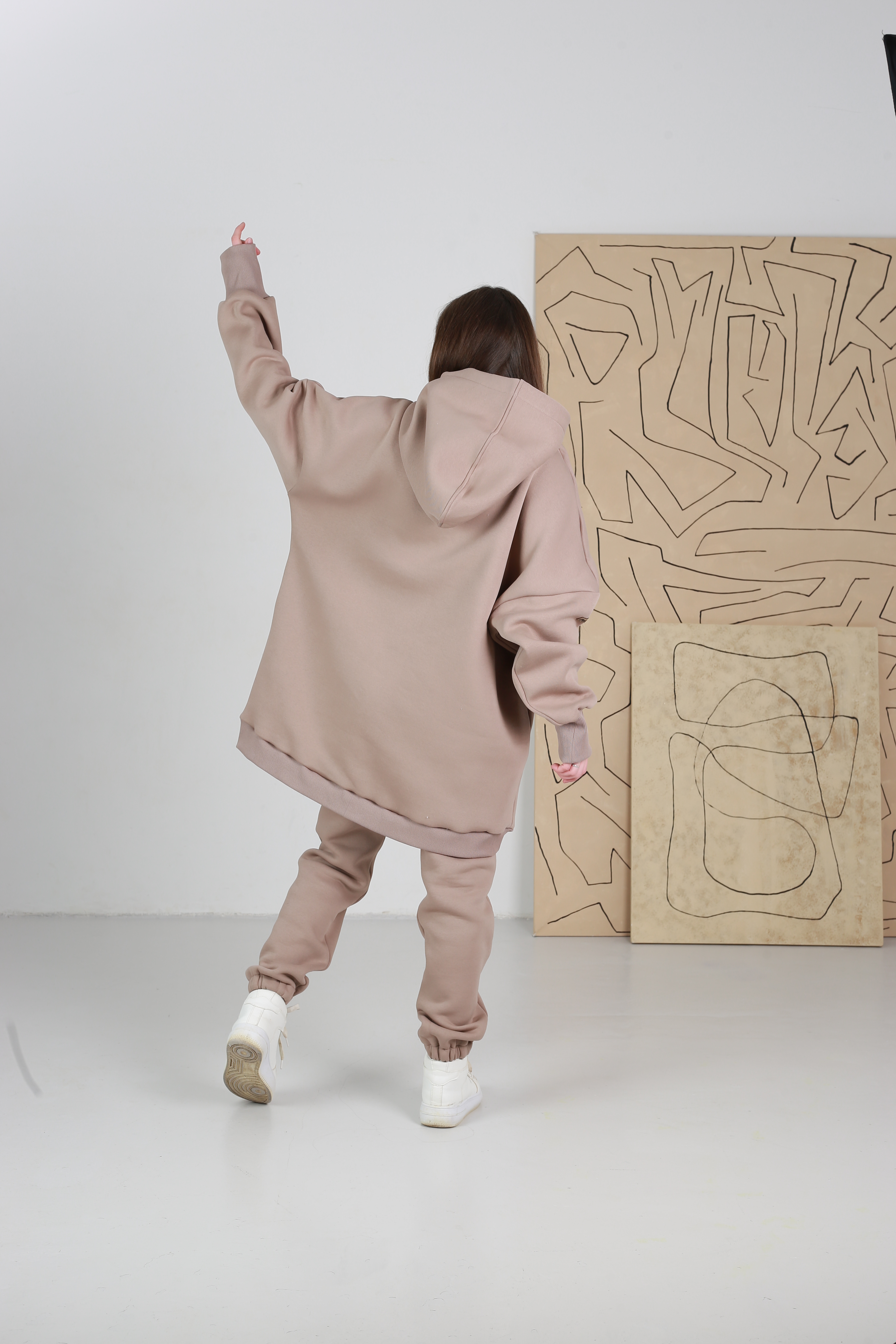 Востребованные на рынке трендовые модели женских популярных костюмов оверсайз из футера.