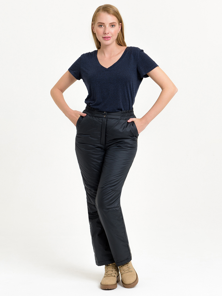 Женские зимние брюки с высокой посадкой, выполнены из гладкой полуматовой ткани с утеплителем из синтепона (100 г/кв.м). К данной модели отлично подходит пуховик мод.W566.22. Рекомендуемый температурный режим: от от 0 до -20 градусов.