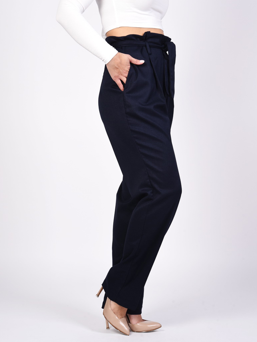 Брюки женские в стиле smart casual, свободного кроя с завышенной линией талии с поясом, спереди со складками и прорезными карманами, на каждый день.