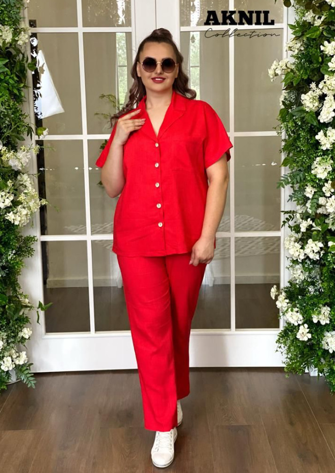 Российская фабрика женской одежды «Aknil» выпускает и реализует оптом летние костюмы из льна для женщин.