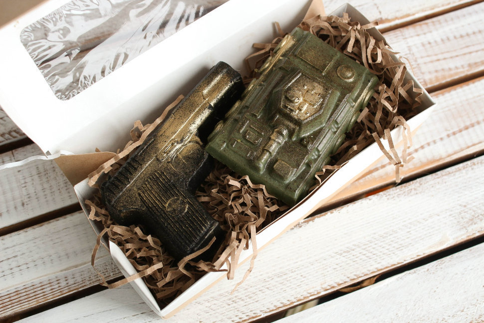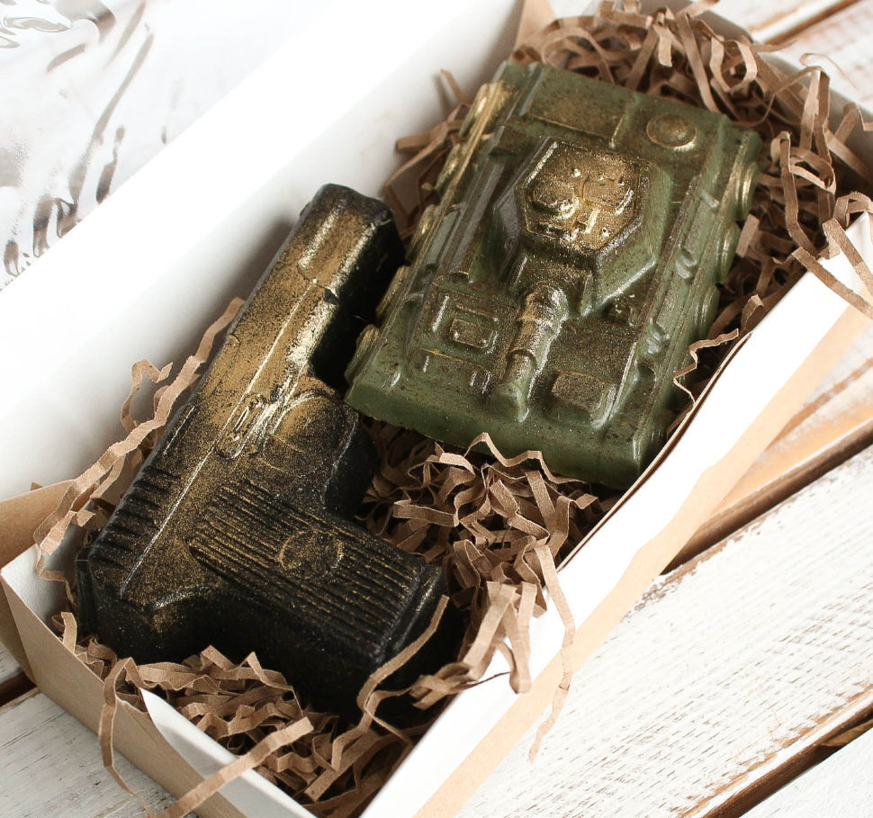 Набор подарочный мужской ТАНКИСТУ из двух кусочков - пистолет и танк.