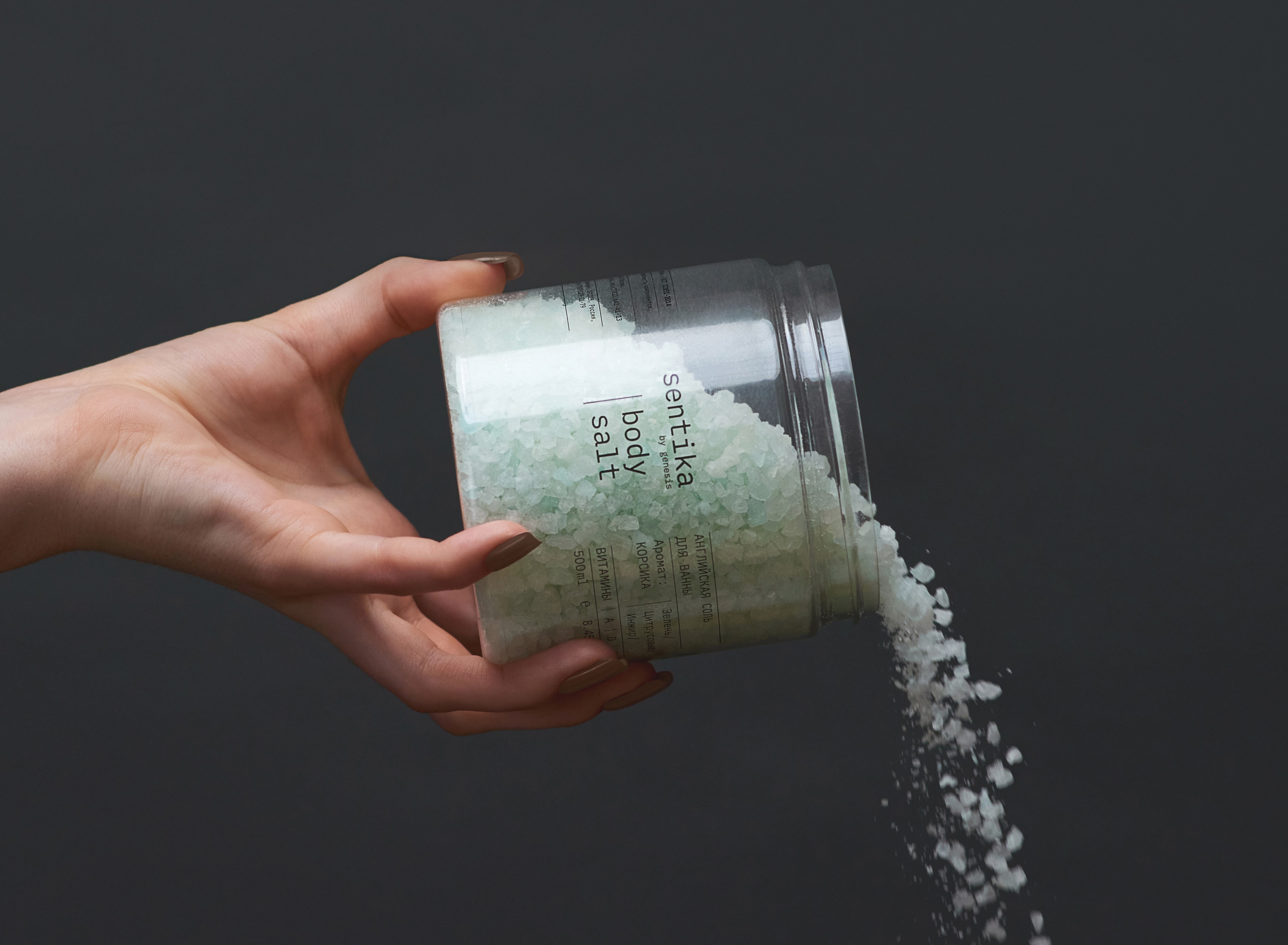Соль морская, сульфат магния, отдушка, ретинола пальмитат (витамин А), токоферола ацетат (витамин Е), холекальциферол (витамин D3), красители: зелёный S, индигокармин, бриллиантовый чёрный BN