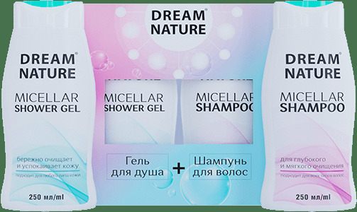 Стильный подарочный набор от DREAM NATURE придётся по вкусу всем, это беспроигрышный вариант для предстоящих праздников. Оригинальная упаковка, пленительный аромат и прекрасное качество средств - идеальное сочетание для подарка. Гели для душа и шампуни обладают приятными ароматами и высоким содержанием натуральных ингредиентов в составе. Эффективная и бережная рецептура обогащена комплексом ценных масел миндаля и арганы, которые питают и увлажняют кожу и волосы. Мягкие моющие компоненты образуют компактную кремовую пену и полностью смываются, бережно удаляя загрязнения и сохраняя естественный гидролипидный барьер.