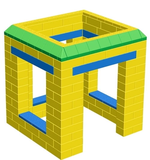 Элементы конструкторов сделаны из полиэтилена низкой плотности. Это экологически абсолютно чистые материалы, из них делают мягкую посуду. Чем больше элементов и чем они разнообразнее, тем более интересные и крупные конструкции можно из них делать. Для экономии надо использовать побольше элементов 4 х 1, но изделия сделанные на основе элементов 4 х 2 прочнее и смотрятся фундаментальнее. Для строительства на улице (на даче в детском саду, во дворе и т.п.) особенно, если нет хорошей ровной поверхности, желательно создать игровую платформу, это позволит обособить место для игры с ГК и создать фундамент на котором постройки будут стоять очень прочно и с точно выставленным горизонтом. Все элементы имеют красное, синее и желтое исполнение, а крышки, наклонные и пирамидальные элементы дополнительно -- оранжевое и зеленое исполнение. На даче можно строить ограждения для цветников, клумб, сидения, дорожки и т.п.
