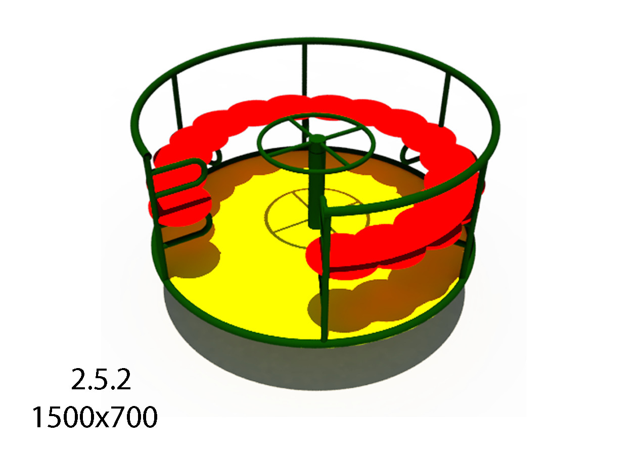 Детские карусели с сиденьями и без, трех-, четырехместные и многоместные изготовлены из металла с полимерно-порошковым покрытием.