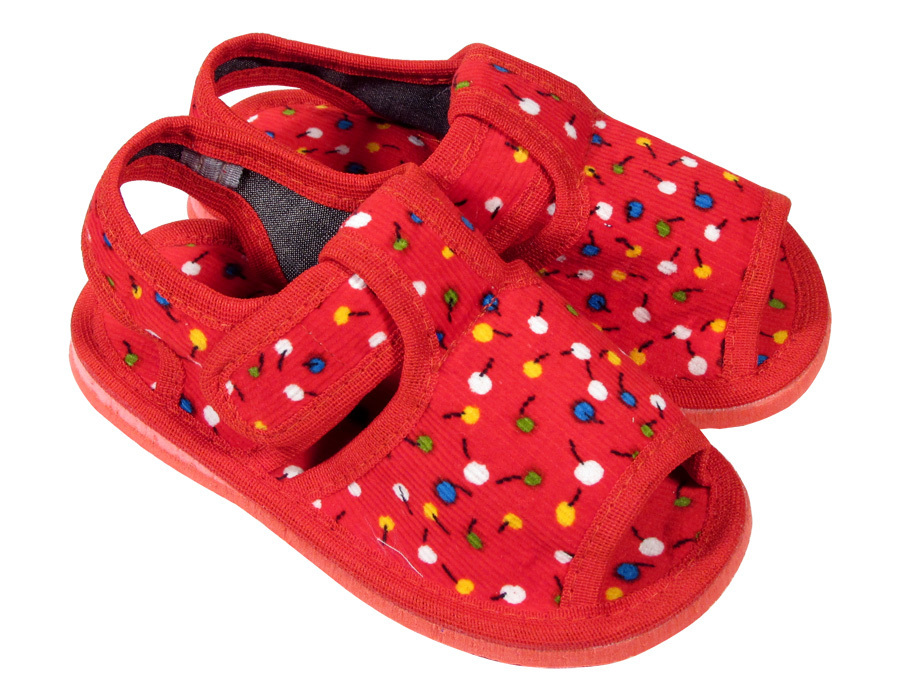 Домашняя обувь с открытой и закрытой пяткой, открытым и закрытым носком, утепленные, с застежкой и без. Тапочки с открытой пяткой предназначены для детей дошкольного возраста. Верх из текстиля, с аппликацией, подошва из пористой спрессованной резины.