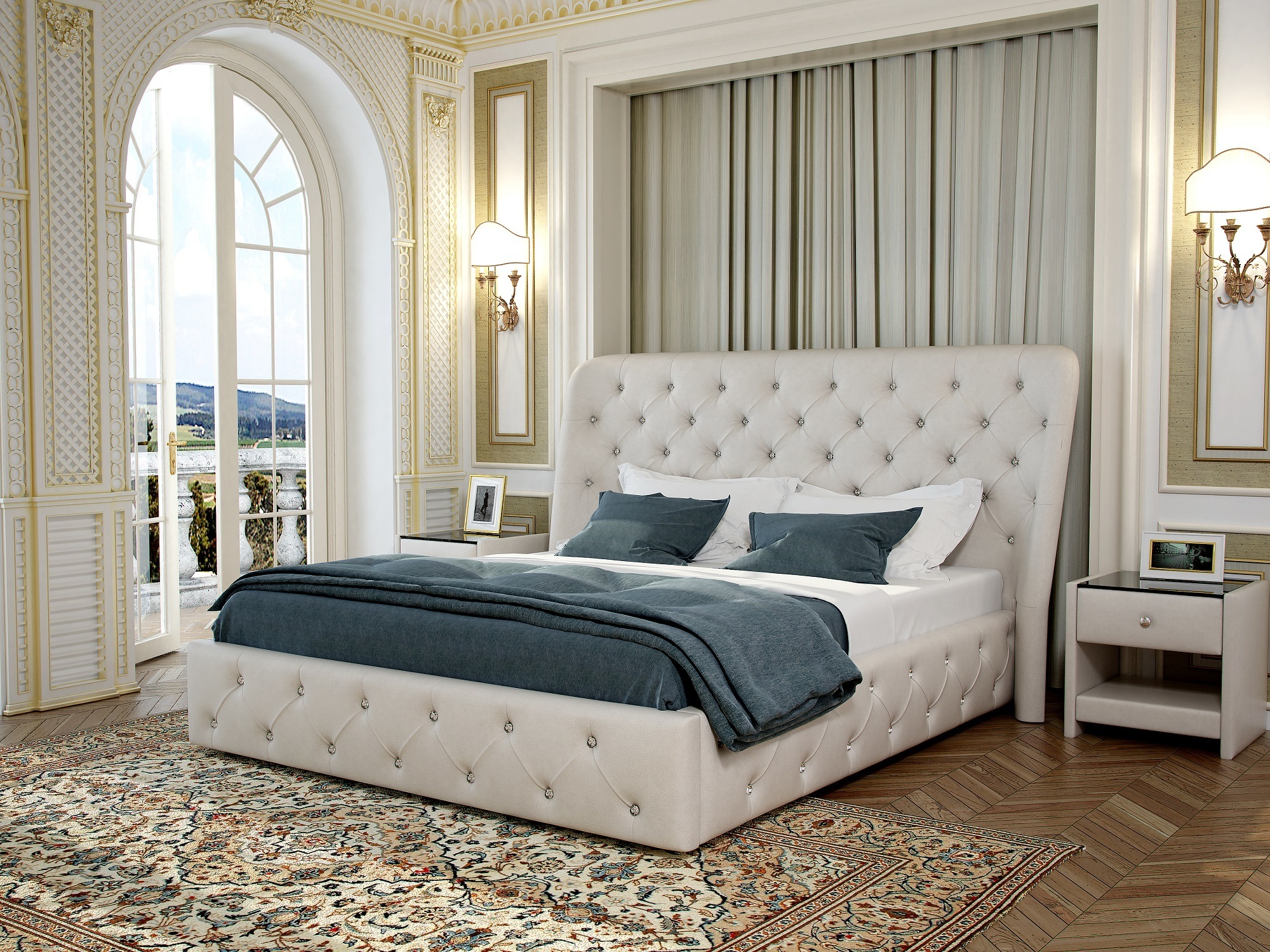 Изюминка кровати – блистательное изголовье: оно, словно корона, украсит вашу спальню. Высокая объёмная спинка создаёт ощущение уюта и защищённости.