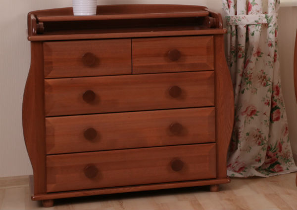 Детские комоды с пеленальным столиком «ЛЕЛЬ» функциональны, имеют 3-5 выдвижных ящиков. Верхняя планка комода откидывается, превращаясь в пеленальный столик.