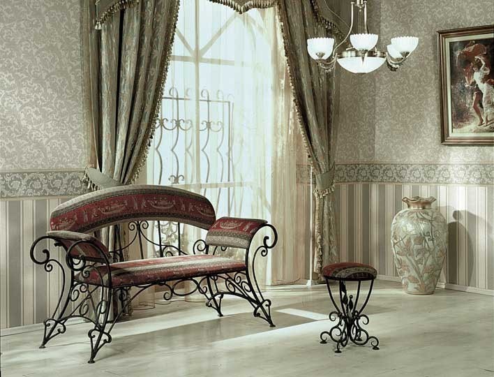 Кованая ажурная мебель, вносит элемент легкости и игривости в пространство комнаты, но в то же время сохраняя и поддерживая общий стиль оформления комнаты.