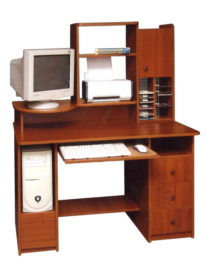 Функциональные компьютерные столы - рабочее/учебное место, оснащённое всем необходимым. Столы комплектуются выкатными полками под клавиатуру, ящичками, отделом под системный блок, полкой для монитора, книжными полками и пр. элементами.