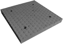 Плита среднего элемента «основания» пешеходного перехода выполнена из полимерно-песчаной смеси, имеет форму параллелепипеда 500х500х50 мм. Имеет на торцах/смежных сторонах характерные упоры, что в процессе укладки позволяет учесть необходимое расстояние между элементами. Антискользящий протектор, усиливает сцепление с подошвами обуви или шинами автомобиля.
