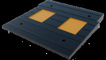 Элемент комплекта приподнятого пешеходного перехода. Устанавливается с обоих сторон уложенной из средних элементов площадки перехода поперек дорожного полотна и с торцов площадки. Имеет форму скошенного параллелепипеда 500х450х5-58 мм с уменьшением высоты грани в сторону заезда/съезда автомобиля.