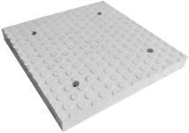 Плита среднего элемента «основания» пешеходного перехода выполнена из полимерно-песчаной смеси, имеет форму параллелепипеда 500х500х58 мм. Имеет на торцах/смежных сторонах характерные упоры, что в процессе укладки позволяет учесть необходимое расстояние между элементами. Антискользящий протектор, усиливает сцепление с подошвами обуви или шинами автомобиля.