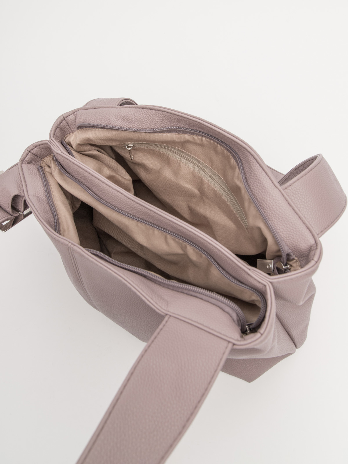 Сумка-тоут среднего размера — универсальная модель для повседневного использования. Оснащена двумя отдельными отделениями на молниях, что обеспечивает удобную организацию содержимого. Плоские широкие ручки обеспечивают комфортное ношение, а декоративная пряжка на передней части добавляет стильный акцент. На задней стороне расположен карман на молнии, внутри — практичные карманы для мелочей.