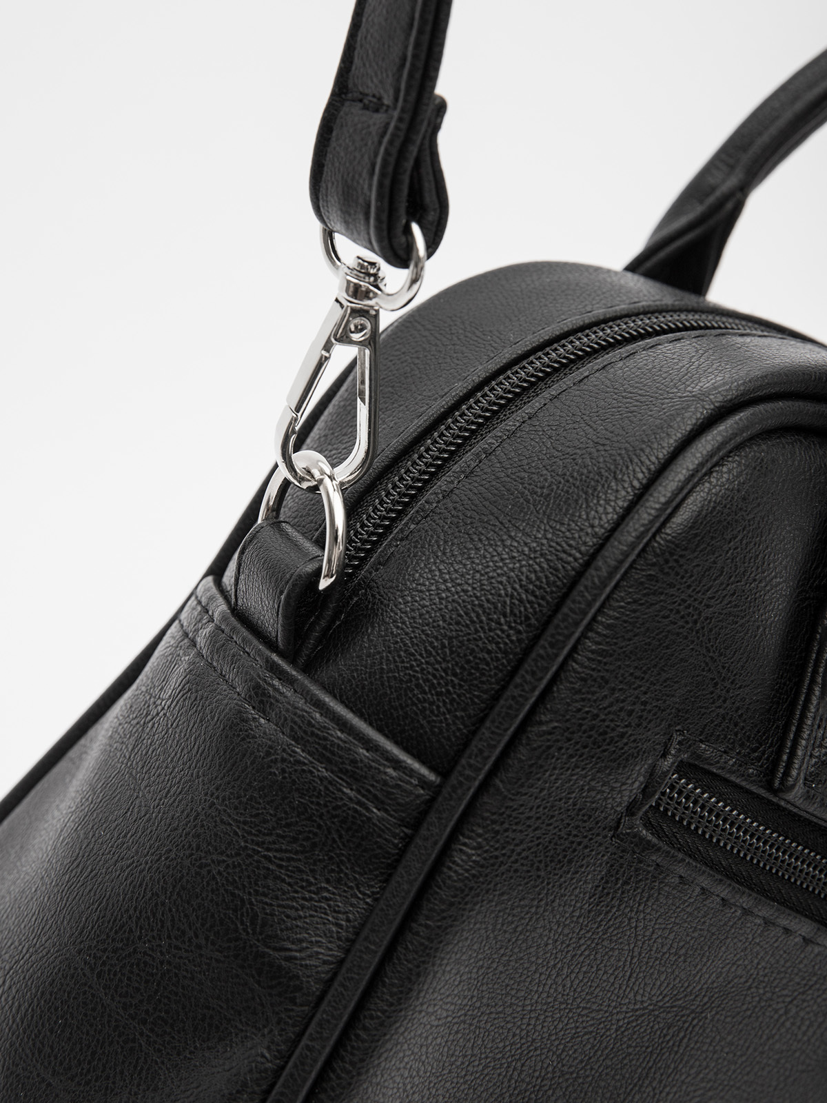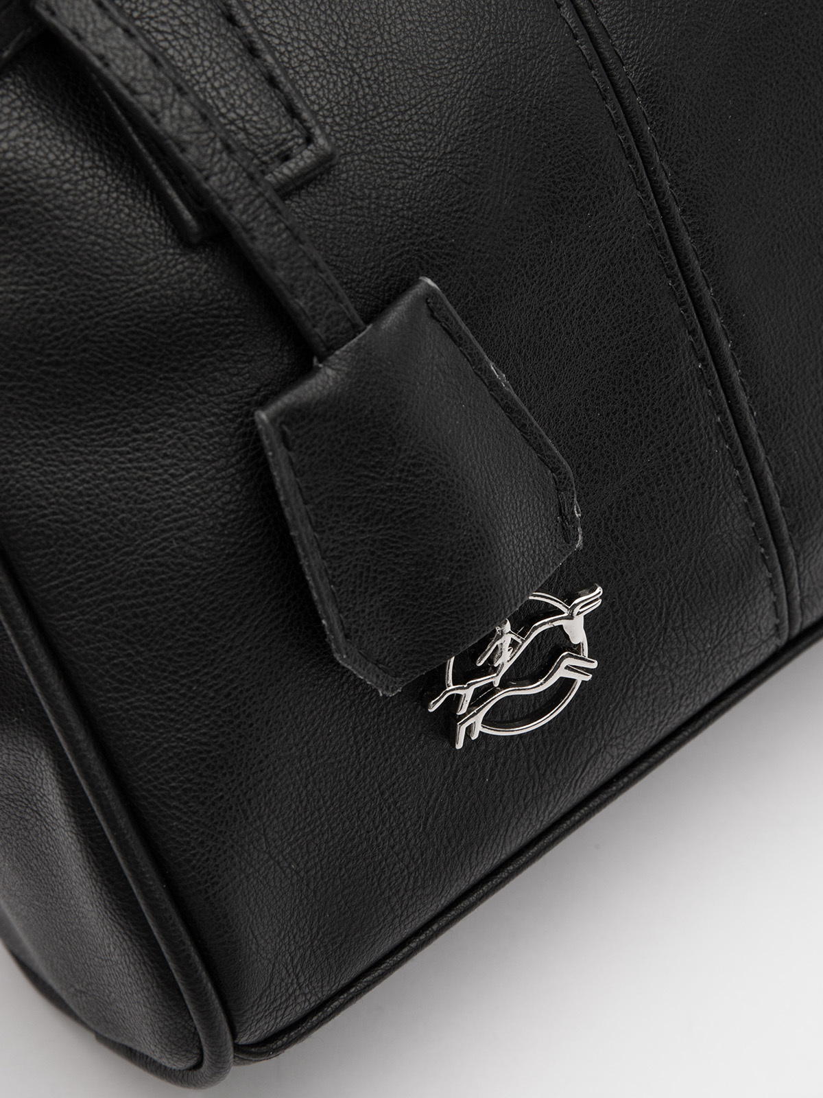 Саквояж габарита S — ретро-стиль с современной функциональностью. Актуальный силуэт в минималистичном дизайне легко сочетается с разными образами. Две ручки и длинный регулируемый ремень позволяют носить его в руке, на плече или как кросс-боди. Широкий бочок обеспечивает вместительность без громоздкости. Основное отделение дополнено задним карманом на молнии для быстрого доступа к мелочам. Внутри — карман на молнии для документов и отделение для телефона. Стильный съёмный брендированный декор добавляет индивидуальности.