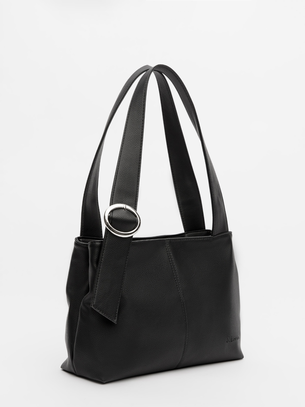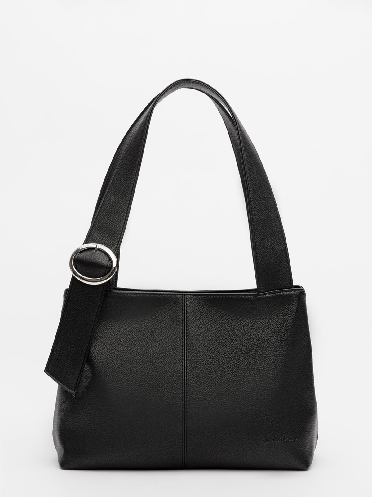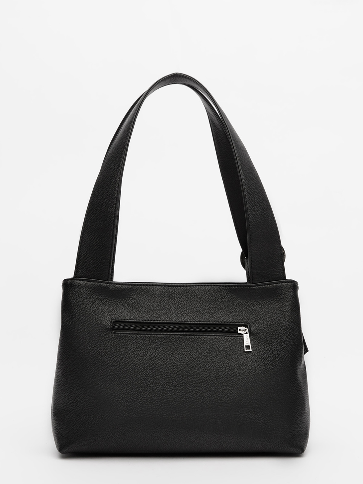 Сумка-тоут среднего размера — универсальная модель для повседневного использования. Оснащена двумя отдельными отделениями на молниях, что обеспечивает удобную организацию содержимого. Плоские широкие ручки обеспечивают комфортное ношение, а декоративная пряжка на передней части добавляет стильный акцент. На задней стороне расположен карман на молнии, внутри — практичные карманы для мелочей.