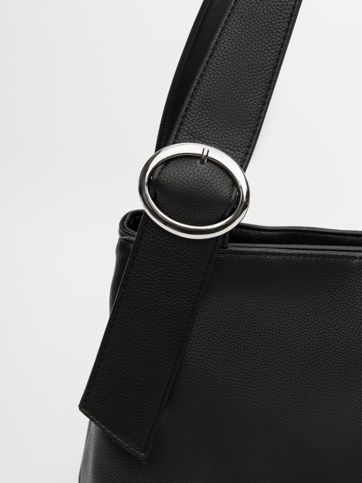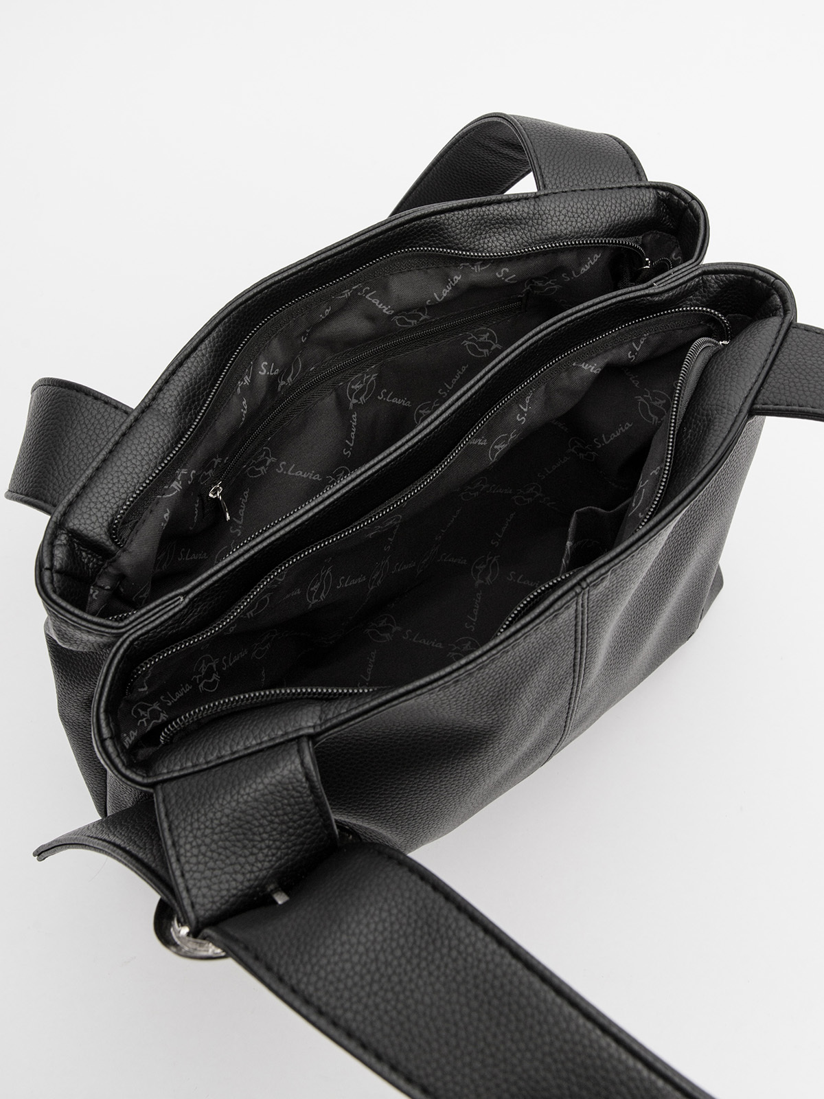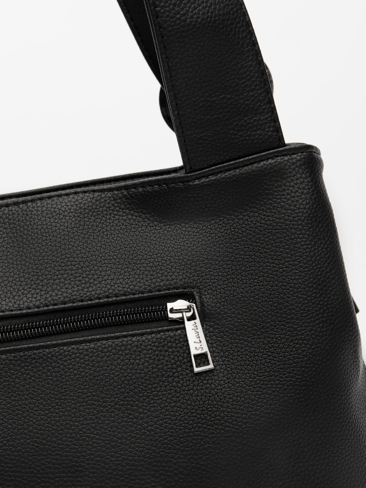 Сумка-тоут среднего размера — универсальная модель для повседневного использования. Оснащена двумя отдельными отделениями на молниях, что обеспечивает удобную организацию содержимого. Плоские широкие ручки обеспечивают комфортное ношение, а декоративная пряжка на передней части добавляет стильный акцент. На задней стороне расположен карман на молнии, внутри — практичные карманы для мелочей.