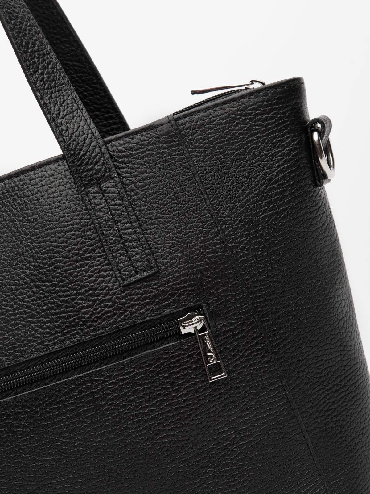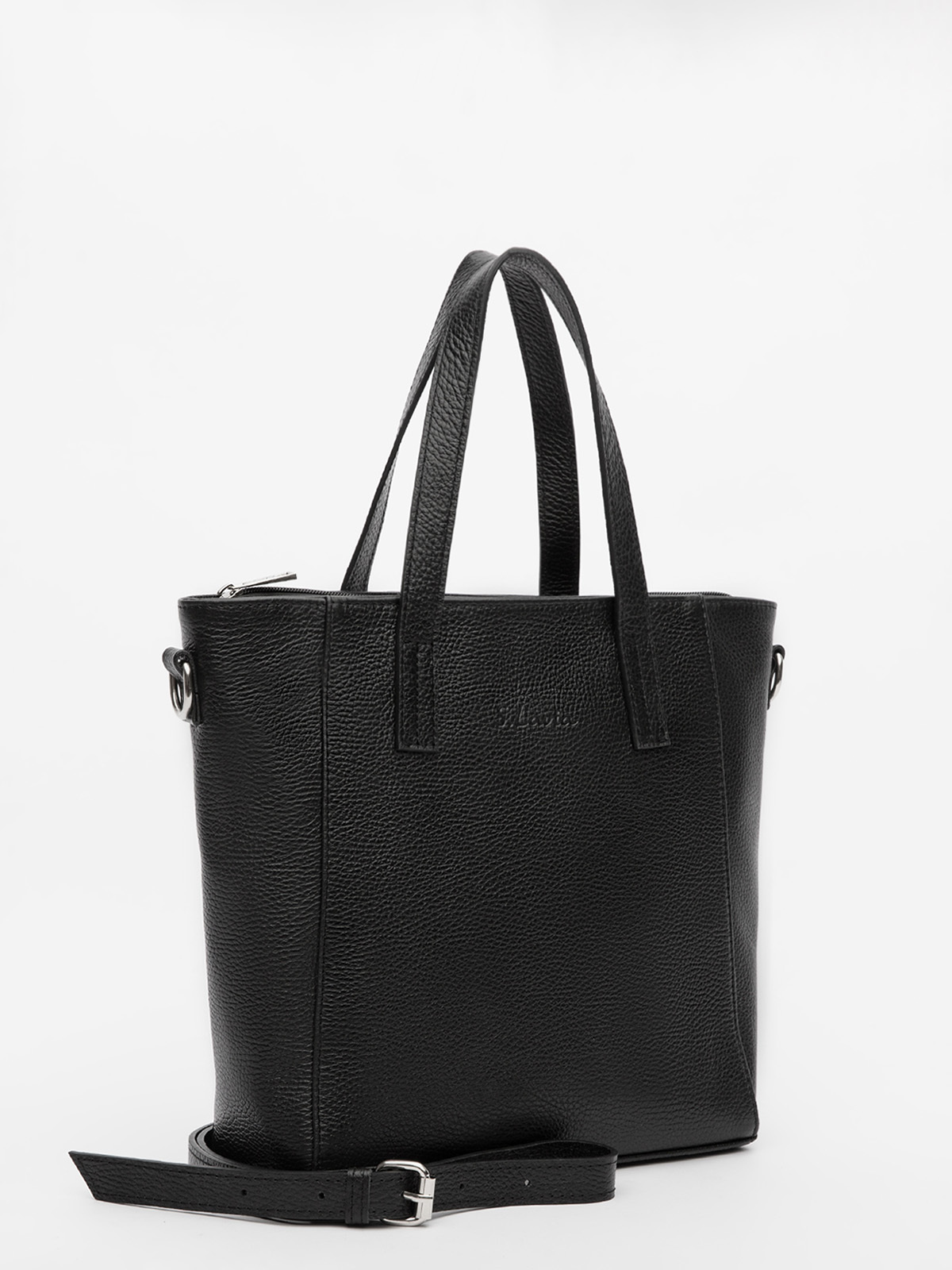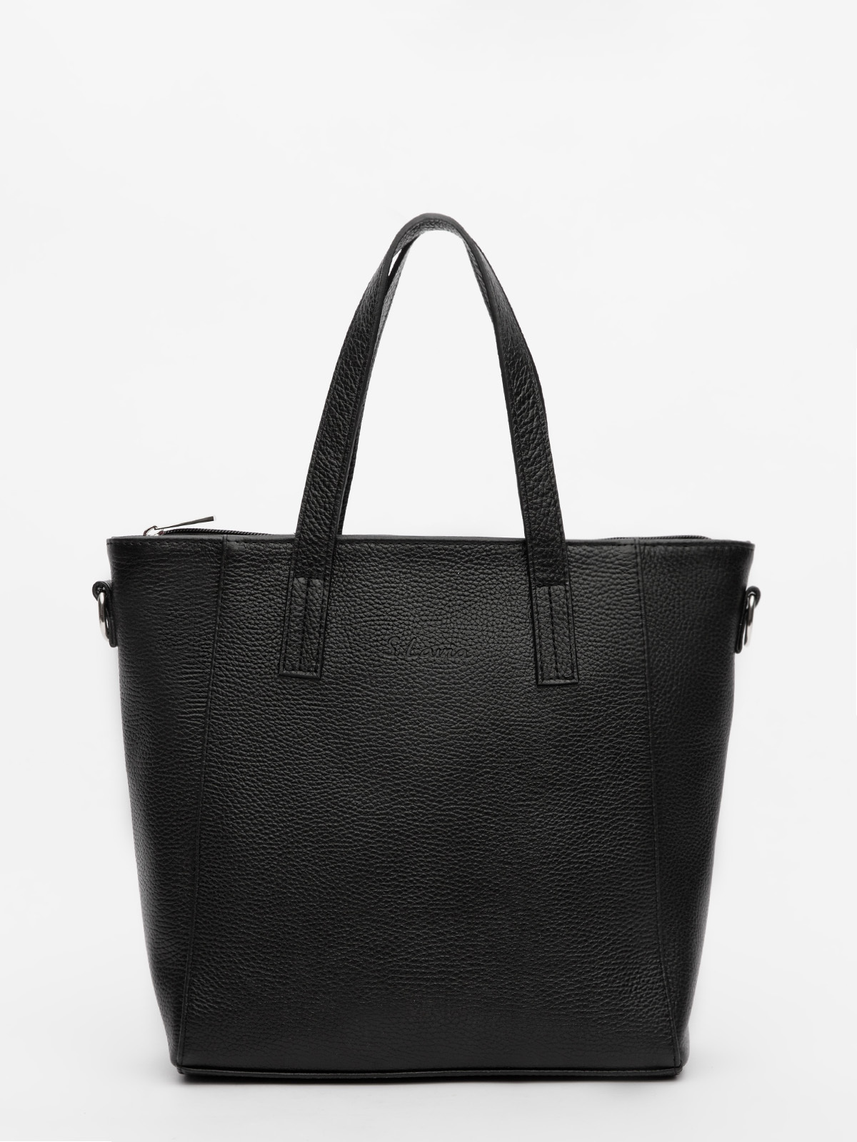 Элегантный кожаный тоут среднего размера с трапециевидным силуэтом, сужающимся книзу. Длинные настрочные ручки и съемный регулируемый ремень на карабинах предлагают несколько вариантов ношения. Внутри - три стандартных кармана для удобного хранения мелочей. Задний карман на молнии обеспечивает быстрый доступ к необходимым вещам. Стильное тиснение на передней части завершает лаконичный классический дизайн сумки.