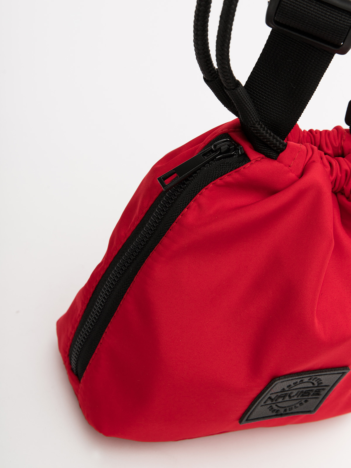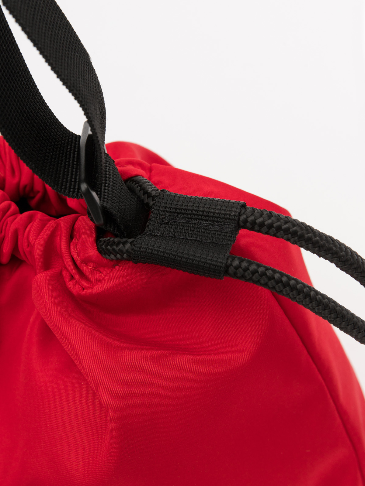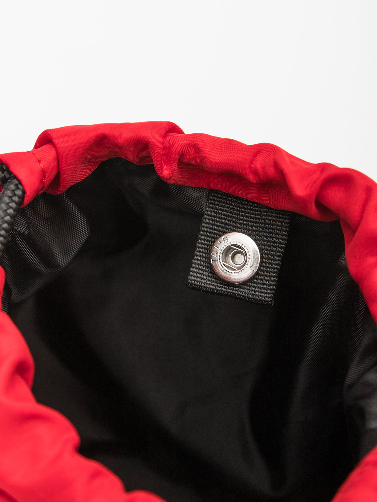 Лёгкий и компактный, этот аксессуар из практичного твила легко трансформируется с помощью шнуровки — от объёмного мешка до аккуратного прямоугольника. Застёжка на кнопку надёжно фиксирует содержимое, а дополнительные карманы на молнии помогают организовать даже мелочи.