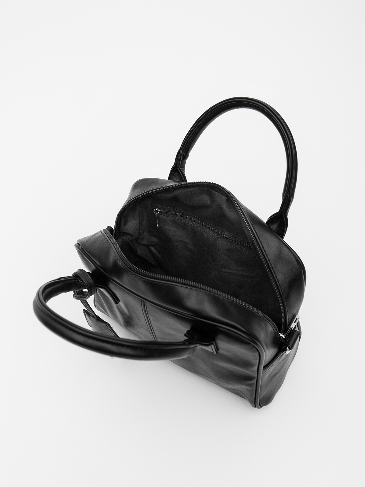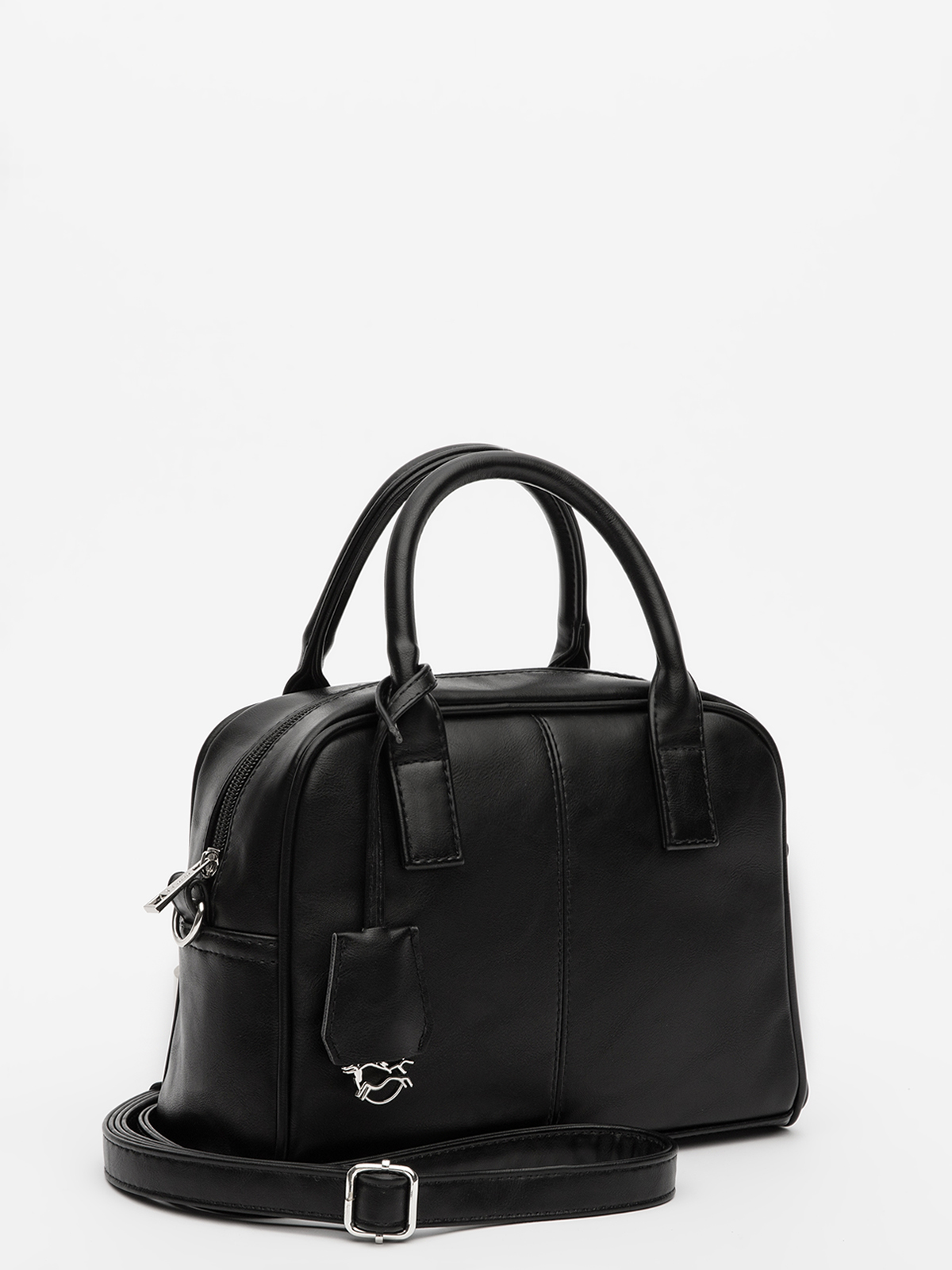 Актуальный силуэт в минималистичном дизайне легко сочетается с разными образами. Две ручки и длинный регулируемый ремень позволяют носить его в руке, на плече или как кросс-боди. Широкий бочок обеспечивает вместительность без громоздкости. Основное отделение дополнено задним карманом на молнии для быстрого доступа к мелочам. Внутри — карман на молнии для документов и отделение для телефона. Стильный съёмный брендированный декор добавляет индивидуальности.