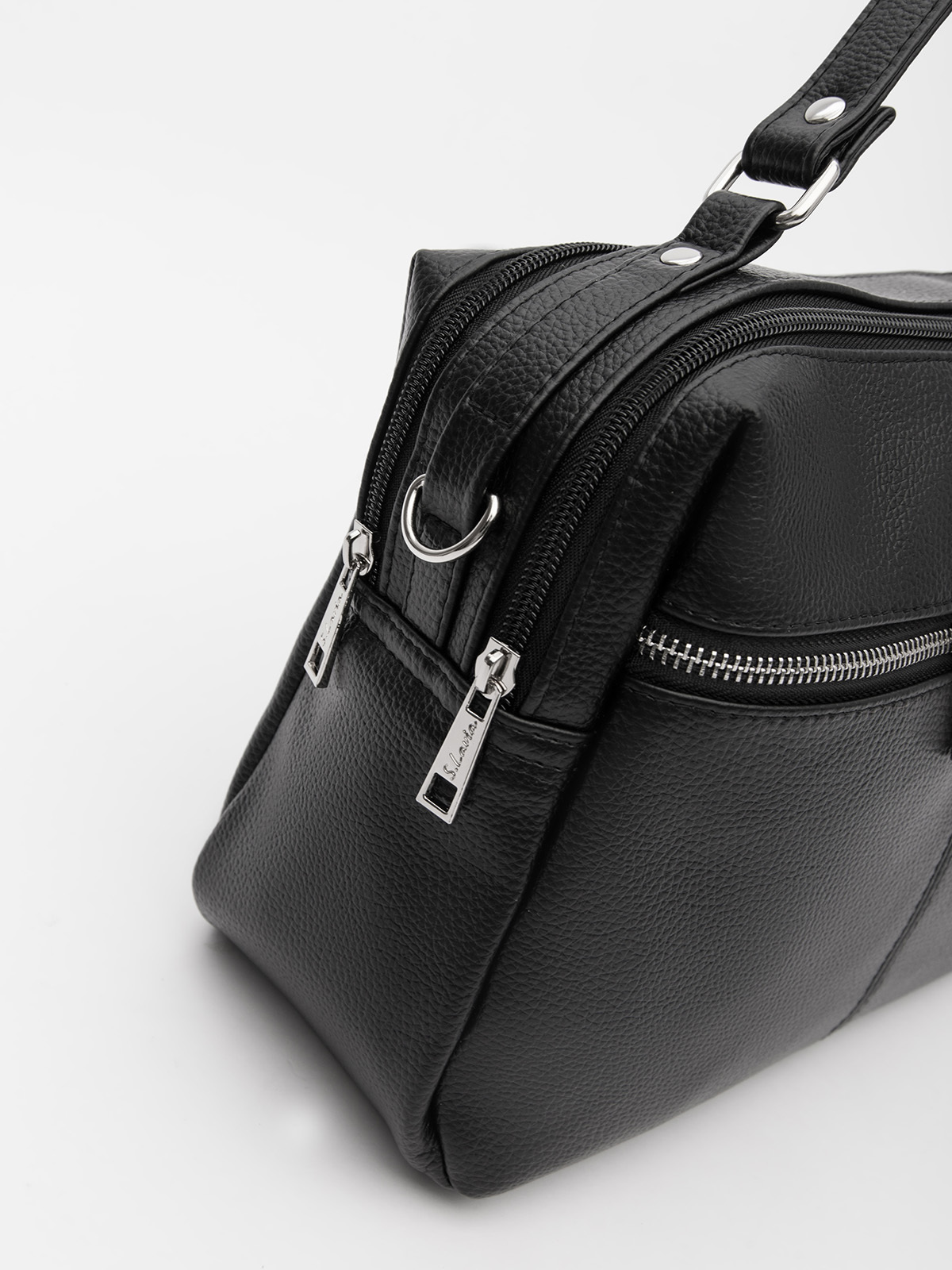 Разрезная передняя деталь с двумя карманами на металлической молнии придает модели строгий, но выразительный характер. Два основных отделения на спиральной молнии и продуманные карманы (включая задний для телефона) обеспечивают идеальную организацию пространства.