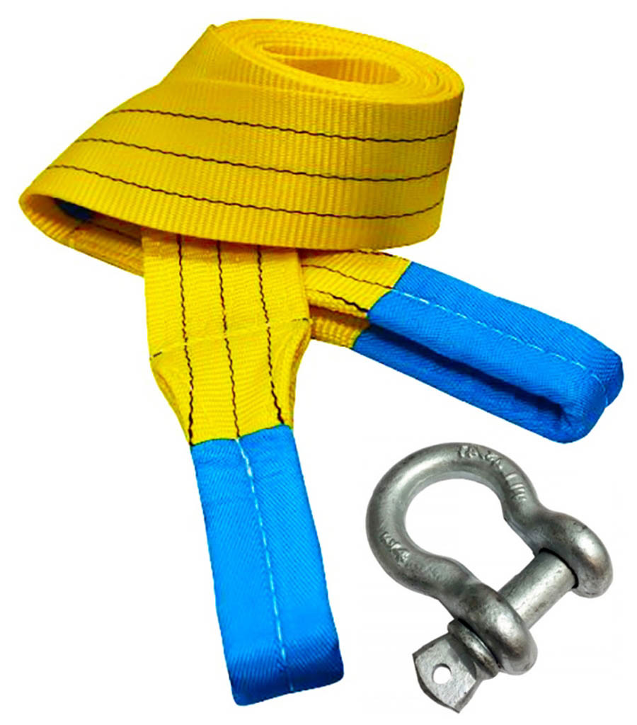 Трос буксировочный ленточный усиленный 16 тонн 5 метров. Комплектация шакл-петля. Производства StropExpert.