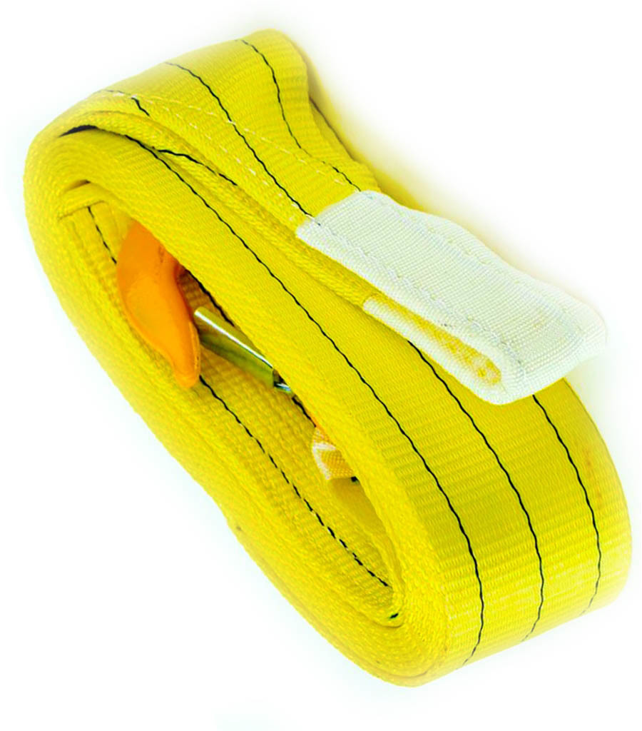 Трос буксировочный ленточный 8 тонн 6 метров. Комплектация крюк-петля. Производства StropExpert.