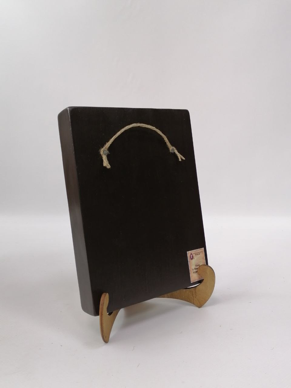 К иконе идет веревочный крепеж для удобного размещения на стене, а также этикетка с информацией об иконе. Надежная упаковка из гофрокартона и воздушно-пузырьковая пленка обеспечивают сохранность товара при транспортировке.