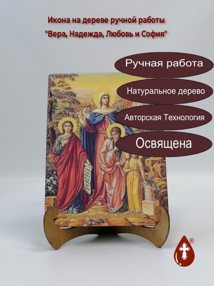 Икона на дереве "Вера, Надежда, Любовь и София, 15x20x1,8 см, арт И8924" станет прекрасным подарком для верующего человека, а также займет особое место в любом доме, храме или церкви.