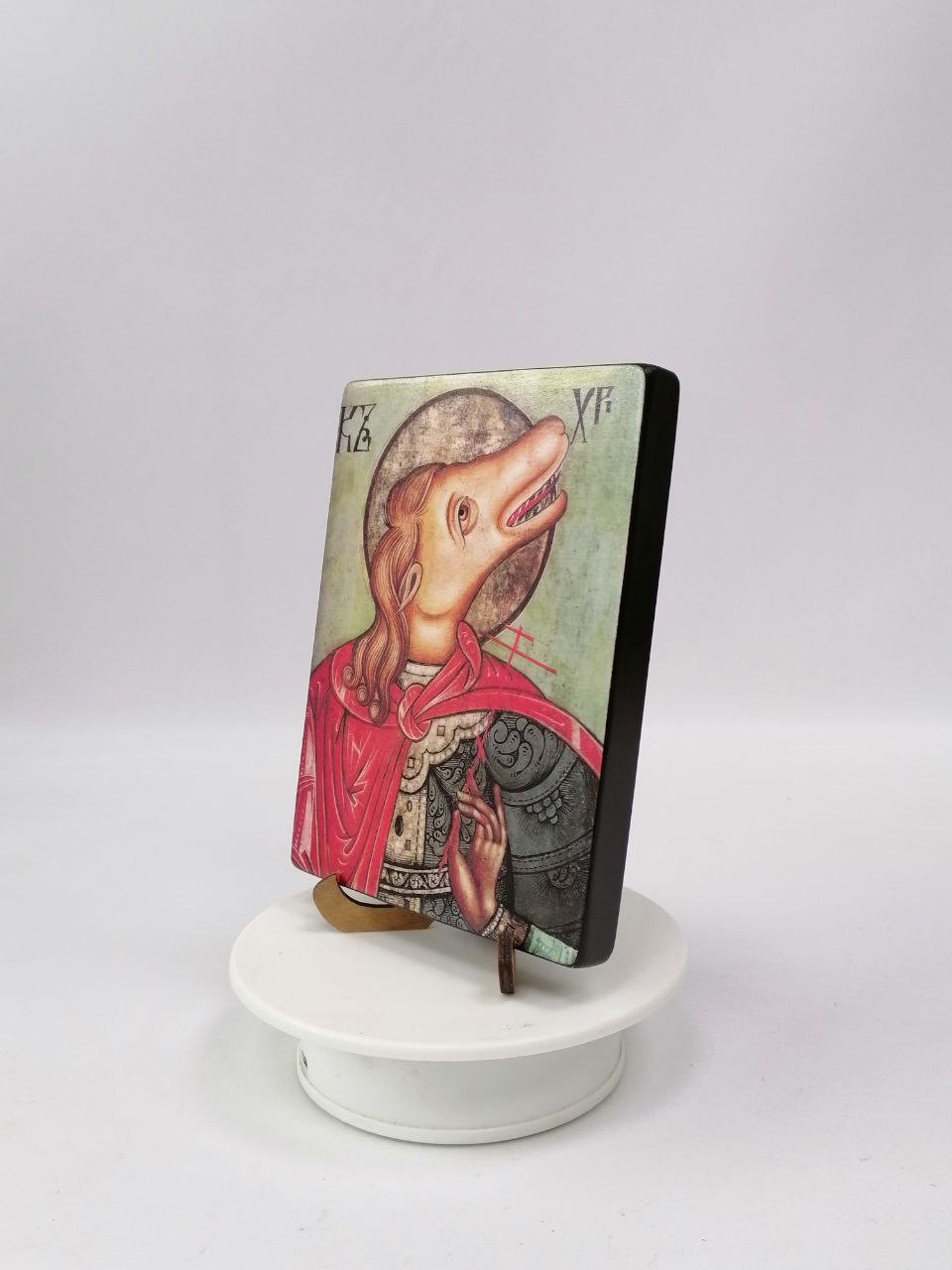Икона на дереве покрыта несколькими слоями экологически чистого лака, который не выделяет вредных веществ и обеспечивает высокую устойчивость к выцветанию, воздействию ультрафиолета и влаги. Тыльная поверхность доски покрыта темной краской и 3 слоями защитного лака, что предотвращает выгибание иконы.