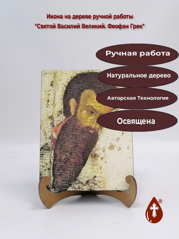 Икона на дереве "Святой Василий Великий. Феофан Грек, 15x20x1,8 см, арт А804" станет прекрасным подарком для верующего человека, а также займет особое место в любом доме, храме или церкви.