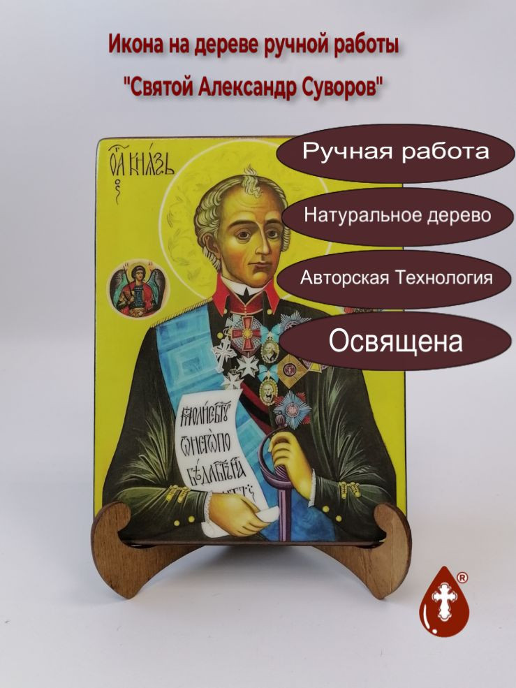 Икона на дереве "Святой Александр Суворов, 15x20x1,8 см, арт А5548" станет прекрасным подарком для верующего человека, а также займет особое место в любом доме, храме или церкви.