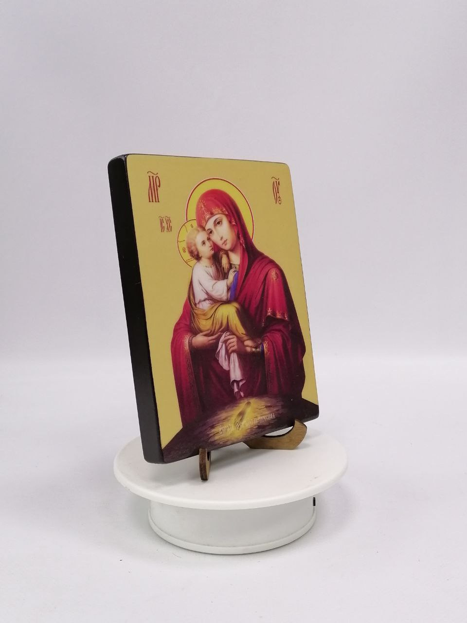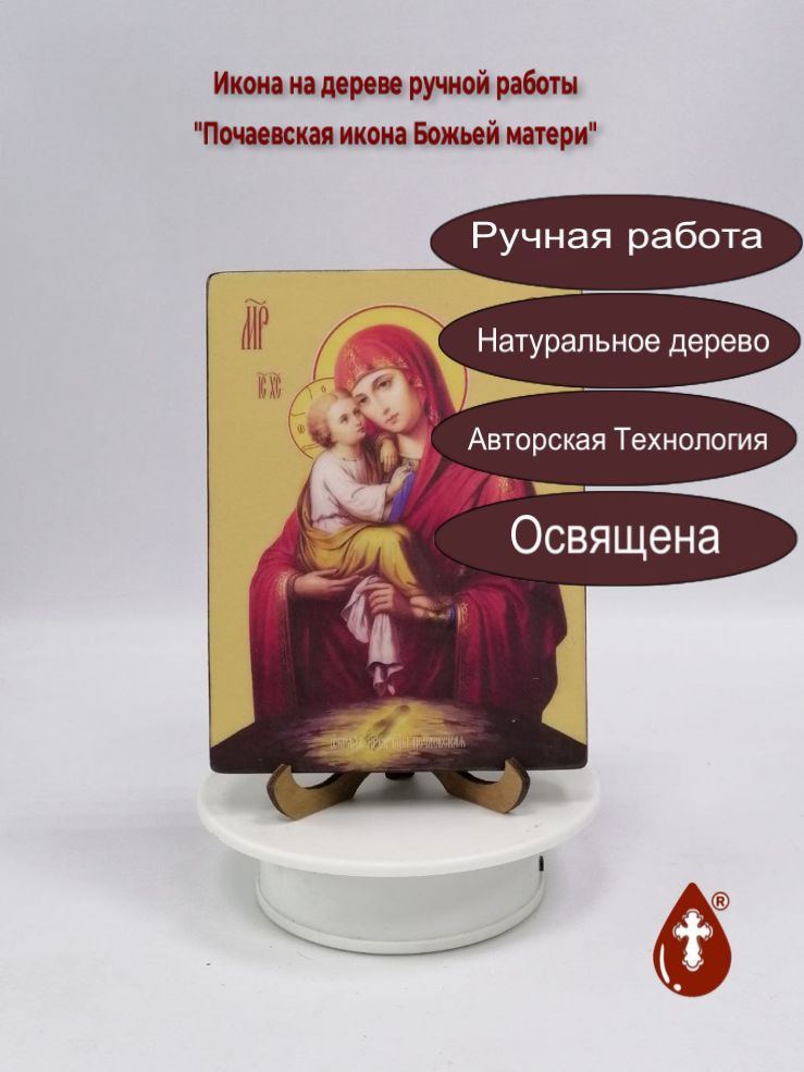 Икона на дереве "Почаевская икона Божьей матери, 12x16x1,8 см, арт Ид3633-2" станет прекрасным подарком для верующего человека, а также займет особое место в любом доме, храме или церкви.